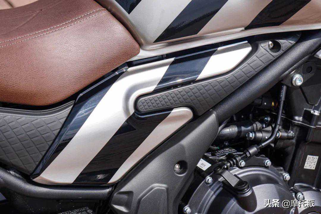 无极500AC采用了当前比较流行的新派复古元素街车造型,其线条设计圆润而不突兀,整体协调感和质感的呈现都算得上是一线水准。可以说,工艺细节上的进步是肉眼可见的,这点值得肯定。
