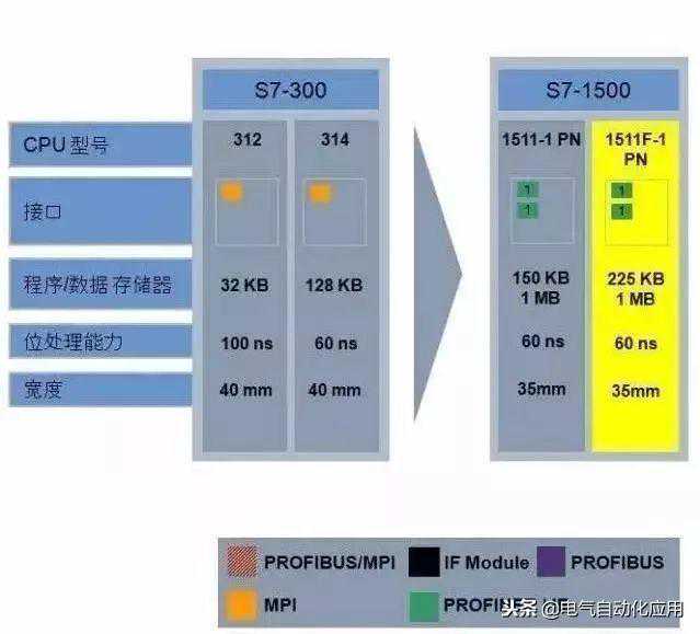 其次,从硬件方面来说,S7-1500PLC的处理速度更快,联网能力更强,诊断能力和安全性更高,不仅可节省成本,提高生产效率,而且安全可靠,维护简单方便,真正成为工厂客户和现场维护人员的首选控制器。例如,相对于S7-300/400,S7-1500PLC采用新型的背板总线技术,采用高波特率和高传输协议,使其信号处理速度更快;S7-1500所有CPU集成1-3个PROFINET接口,可实现低成本快速组态现场级通信和公司网络通信,而S7-300/400PLC只有个别型号CPU才集成有PROFINET接口;S7-1500PLC的模块集成有诊断功能,诊断级别为通道级,无需进行额外编程,当发生故障时,可快速准确地识别受影响的通道,减少停机时间,这是S7-300/400PLC所无法比拟的。