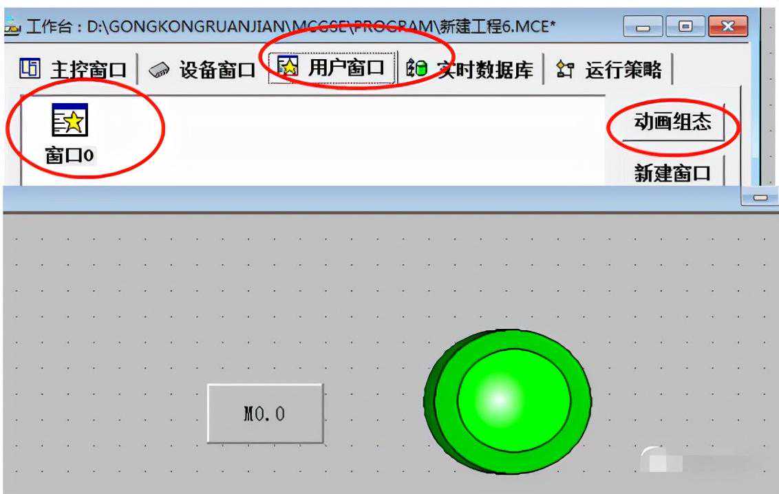在用户窗口新建简单的画面关联PLC的变量后下载