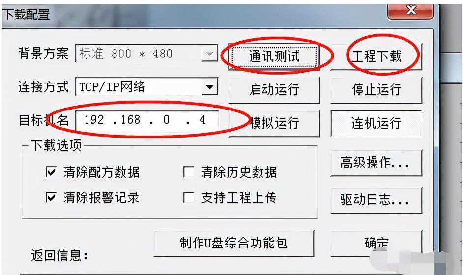 完成后输入正确的触摸屏IP地址后,选择下载
