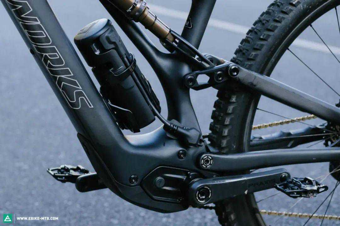 除了隐藏在下管的320Wh电池外,LevoSL还拥有额外的小型增程器电池,可直接整合在水壶架上,重量为1050克,额外提供160Wh。