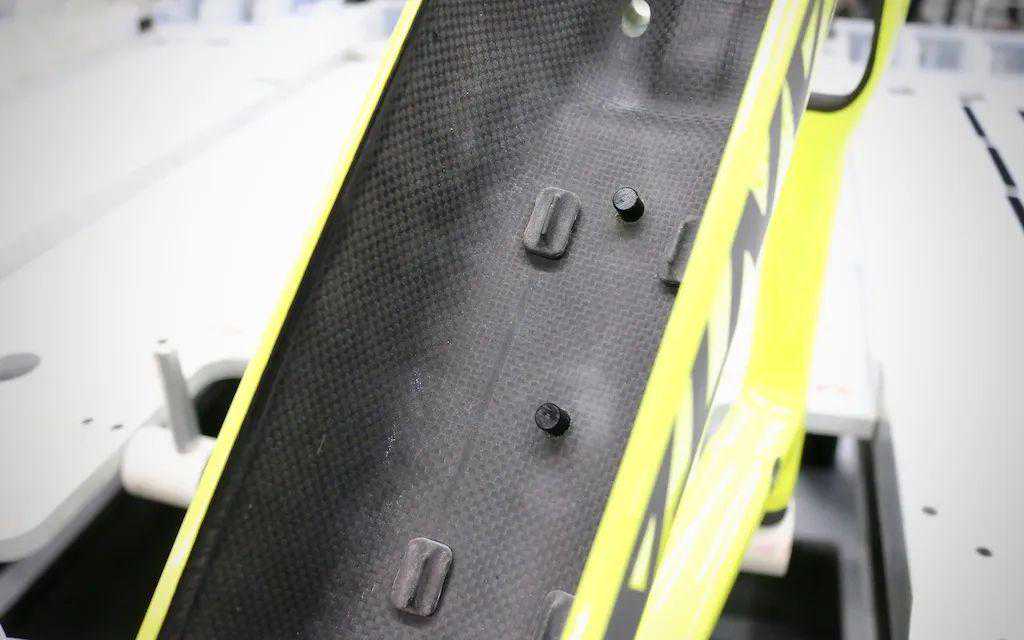 电池区域由一块碳纤维板保护,只需一个内六角便可拆除。在这款Heckler上,SantaCruz力求将整合设计发挥到极致,研发部门的目标是,要设计一款看起来不那么像“电助力车般臃肿”的电助力车,因此这款车无论从任何角度看,都不显得过于另类。