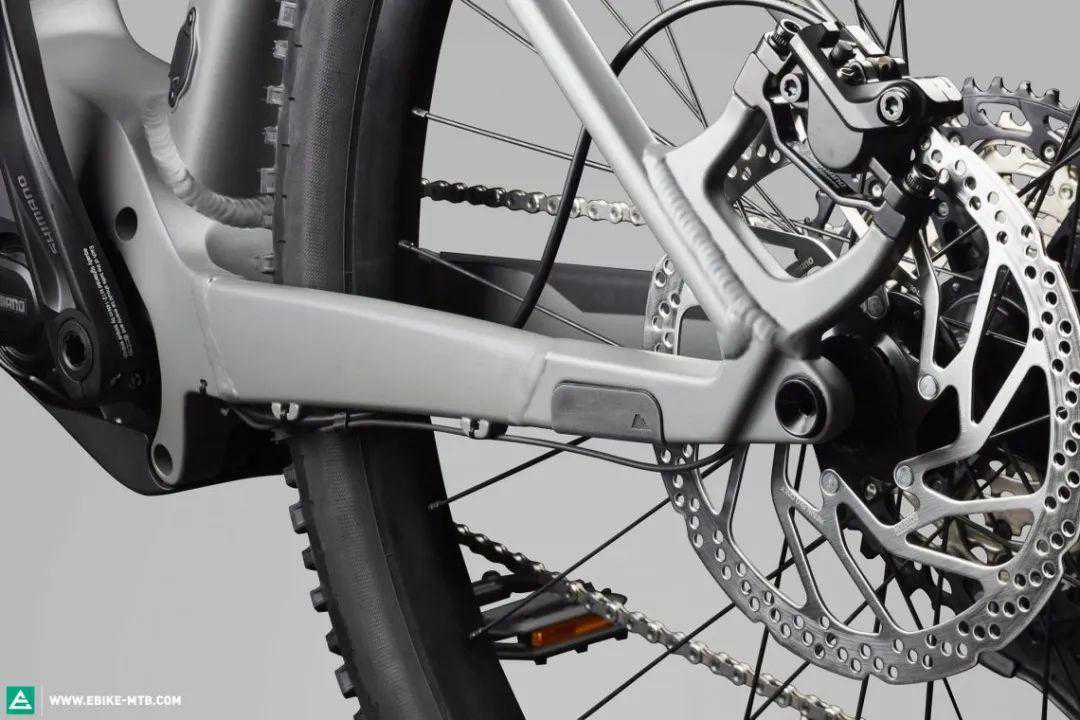 整车使用四活塞刹车,搭配SRAM混搭SHIMANO12速套件,为了更好地兼容禧玛诺电机,使用XT曲柄搭配Eagle盘片。