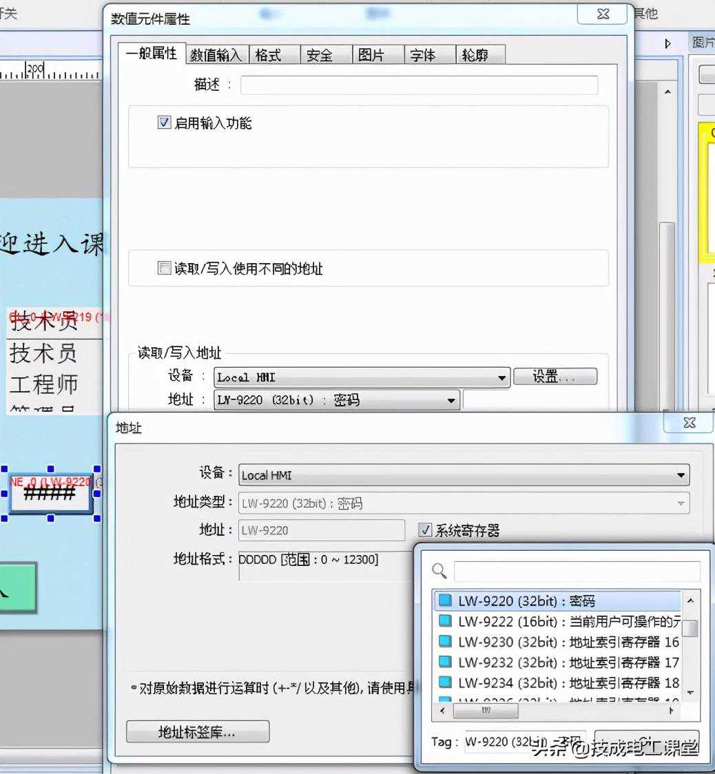 1.使用数显来修改密码,读取和写入地址选择LW—9500用户密码1也就是修改对应技术员密码,勾选通知,设ON,写入后,系统寄存器地址LB—9061更新密码(设置为ON)