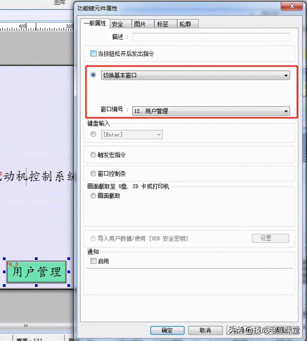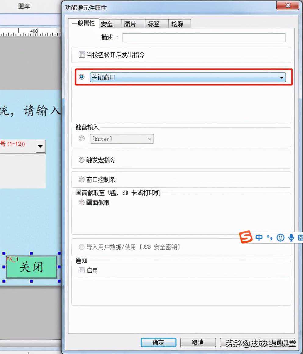 3.使用功能键做一个返回键,勾选通知,选择系统寄存器地址LB—9050用户注销