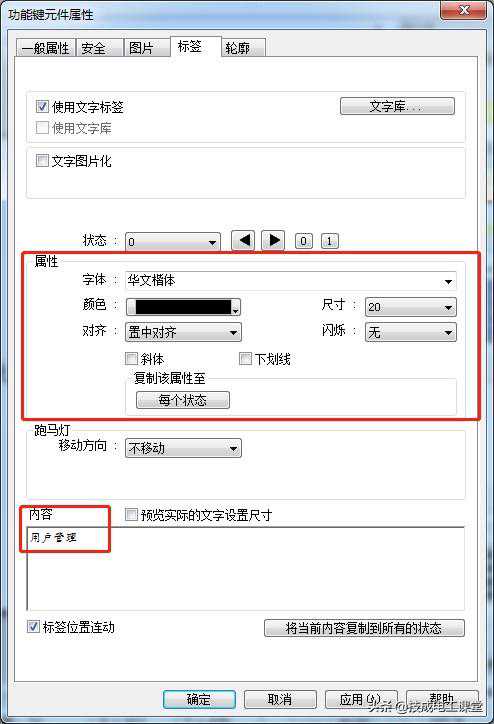 使用标签文字,属性字体根据自己喜欢来设定,输入内容:用户管理。