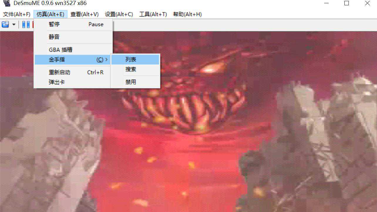 现在NDS的模拟器,最好用的就是DeSmuME。如下图:找到金手指的列表