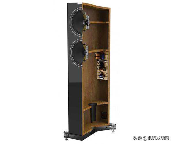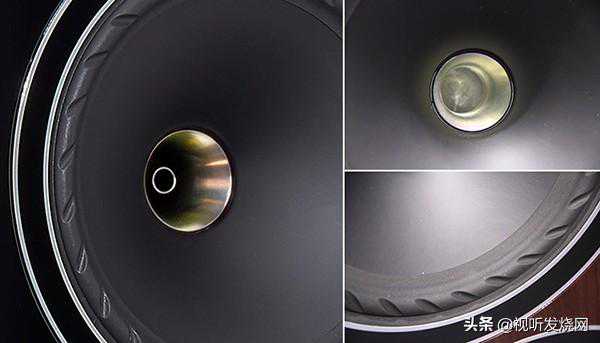 他们的同轴单元有个特殊的名词,叫做IsoFlare。他们将高音和中低音做在同一轴心的单元上,高音采取类似压缩驱动器的设计,让高音经过一段喉管后,声波经挤压而能投射得更远。但因为经过喉管发出的高音指向性会太强,因此他们透过喉管开口配合中低音单元的锥盆弧面,提高扩散性。这些设计,都靠经验,都是知识。而F703使用的高音非常特别,这是一个75mm的钛金属高音,由钕磁铁驱动,具特殊散热设计,其高音与同轴中低音的分频点设定在850Hz,已经触及中频的范围,而其向上延伸更可达30KHz之谱,可见其性能有多优秀。其同轴中低音和低音的振膜采用多层纤维(multi-fiber)制成,质地坚硬,原厂强调这个振膜发出的声音音色自然,而且耐冲击性高,因此当单元工作时的盆分裂失真小。