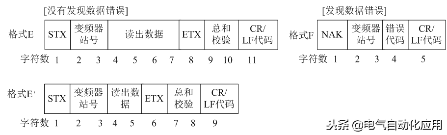 上述数据格式中数据指的是PLC与变频器传输的数据(如频率和参数)。