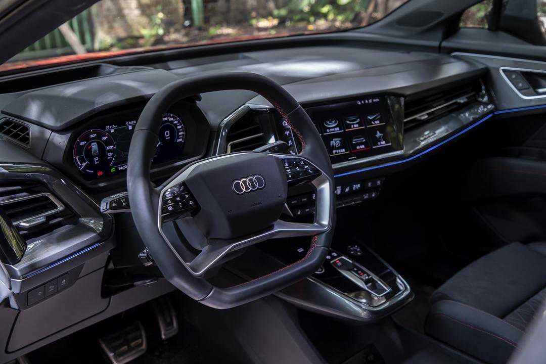 进入车内,Q5e-tron的内饰也有很多特别的设计。首先会看到非常复杂的驾驶台设计,且采用了非对称式的造型,大量界面都倾向驾驶座,像是战斗机座舱一般。而屏幕的布局还是继承了燃油车时代的特点,分体式的设计很方便驾驶员读取信息以及操作。嵌入式仪表盘其实有着迈凯伦720S仪表的那种感觉,驾驶台上方还有很大的ARHUD,比普通HUD信息更全更清晰。11.6英寸中央大屏加入新的AUDICONNECT系统,基础功能都在线,也支持CarPlay,并且引入了腾讯生态,也就是说腾讯的所有APP都能下载使用,对我这种QQ音乐“依赖者”还是非常友好的。同时官方还提供3年免费基础服务流量,以及3年每月6GB的赠送流量,导航、听歌等基础保障是完全足够的。