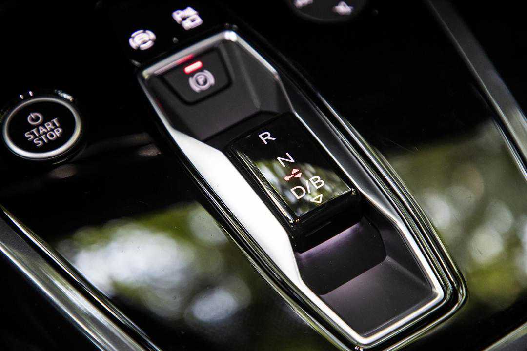 值得一提的是奥迪Q5e-tron保留了空调操作实体按键,可以很快上手,所以对这台车就不会很陌生。另外中控台下方的设计很独特,但也是很尊重传统,奥迪Q5e-tron还是设置了点火开关,并且挂挡的方式和燃油车没有什么区别。