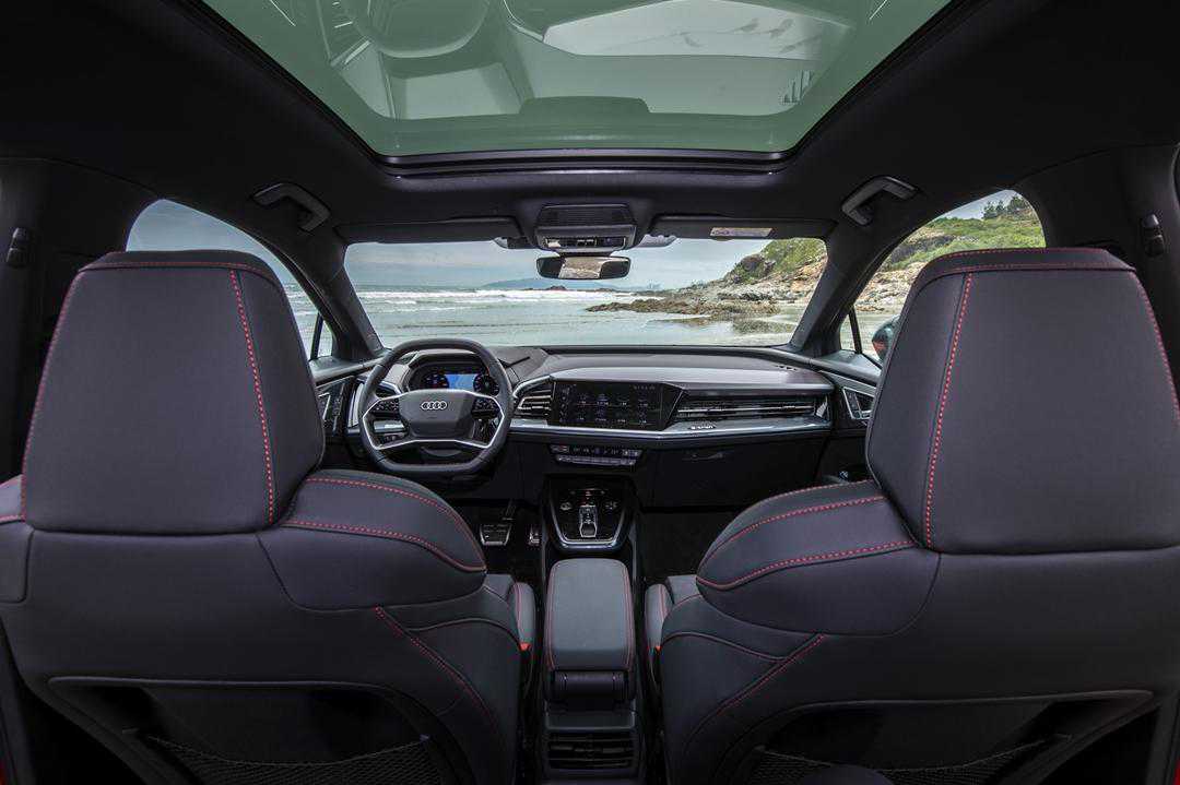 如果要问我“一部实用性车辆的后排需要具备哪些特点?”第一,上下车便利性要到位;第二,空间利用合理,比如第二、第三排腿部空间要够;第三,座椅舒适性要好。通过我们的体验,发现奥迪Q5e-tron后门的面积和开度都很大,加上它的离地间隙并不算高,这一点充分照顾到小孩和老人上下车的便利性。而六座版本的第二排独立座椅有着明显优势,膝部空间大概两拳左右,头部空间很宽裕至少一拳多,再加上全景天窗显得车内很通透,座椅舒适度更是相当不错。而得益于纯电MEB平台,第二排地板中间只有那么一点点隆起,几乎可以忽略不计。
