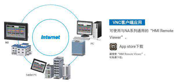 具备VNC服务器功能,可通过Ethernet或Wi-Fi查看并操作现场的HMI画面。