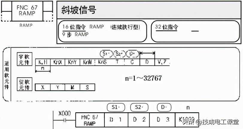 指令的执行功能为:当驱动条件成立时,在指定的n个扫描周期数内,D由S1指定的初始值变化到S2指定的目标值。
