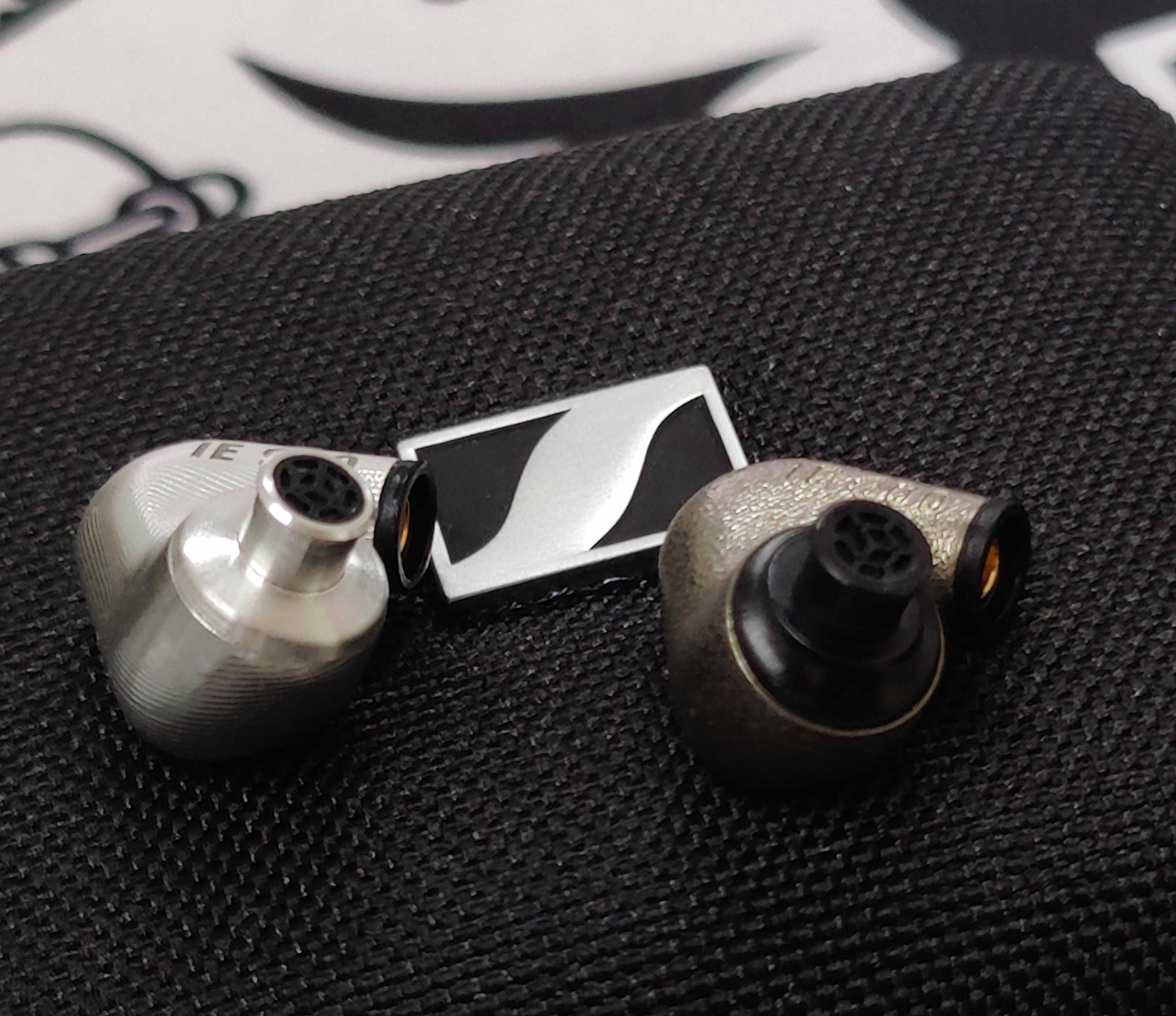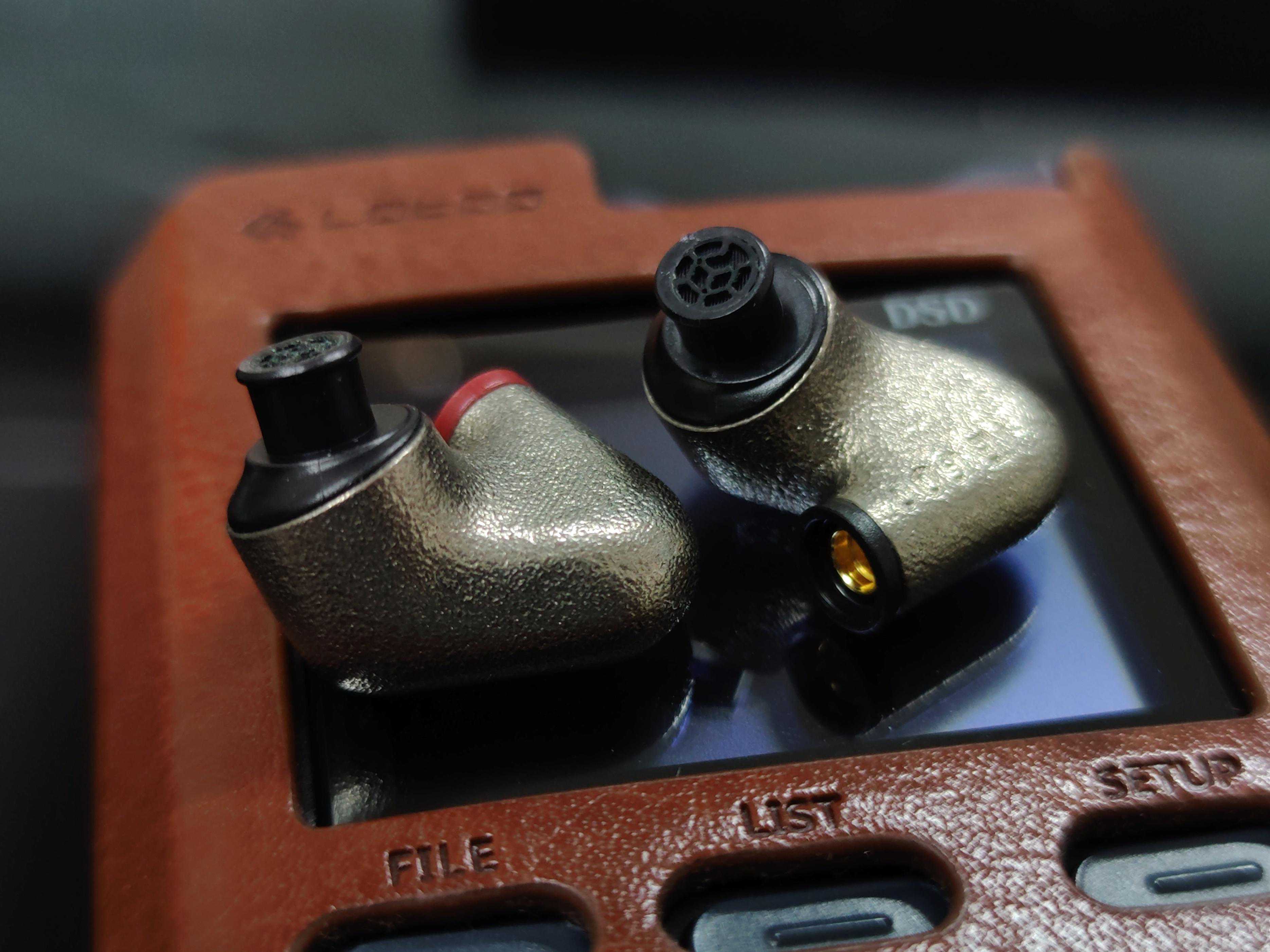 在这方面,IE600同样也做得很棒,超抗弯曲性的ZR01非晶态金属外壳德国3D打印,手感近似稀有金属般的磨砂光泽和纹理。作为两款都是动圈耳塞的泄气孔的位置都巧妙地设置在不算太显眼的耳机正面logo上方,左右声道的mmcx插孔都是用红黑不同颜色的保护圈加以区分,顺带提一句:尽管森海的mmcx插孔设计为了使用更加坚固而比普通的稍微凹陷些,我不敢保证是否所有的mmcx可更换升级线都能是否完全配套插入,但是至少我手头的所有的带有mmcx插针的升级线都能使用,其中包括:ddHiFiAirNyx纯银4.4平衡屏蔽升级线和effectaudioErosS爱神带有可更换ConX的mmcx插头的4.4平衡升级线。