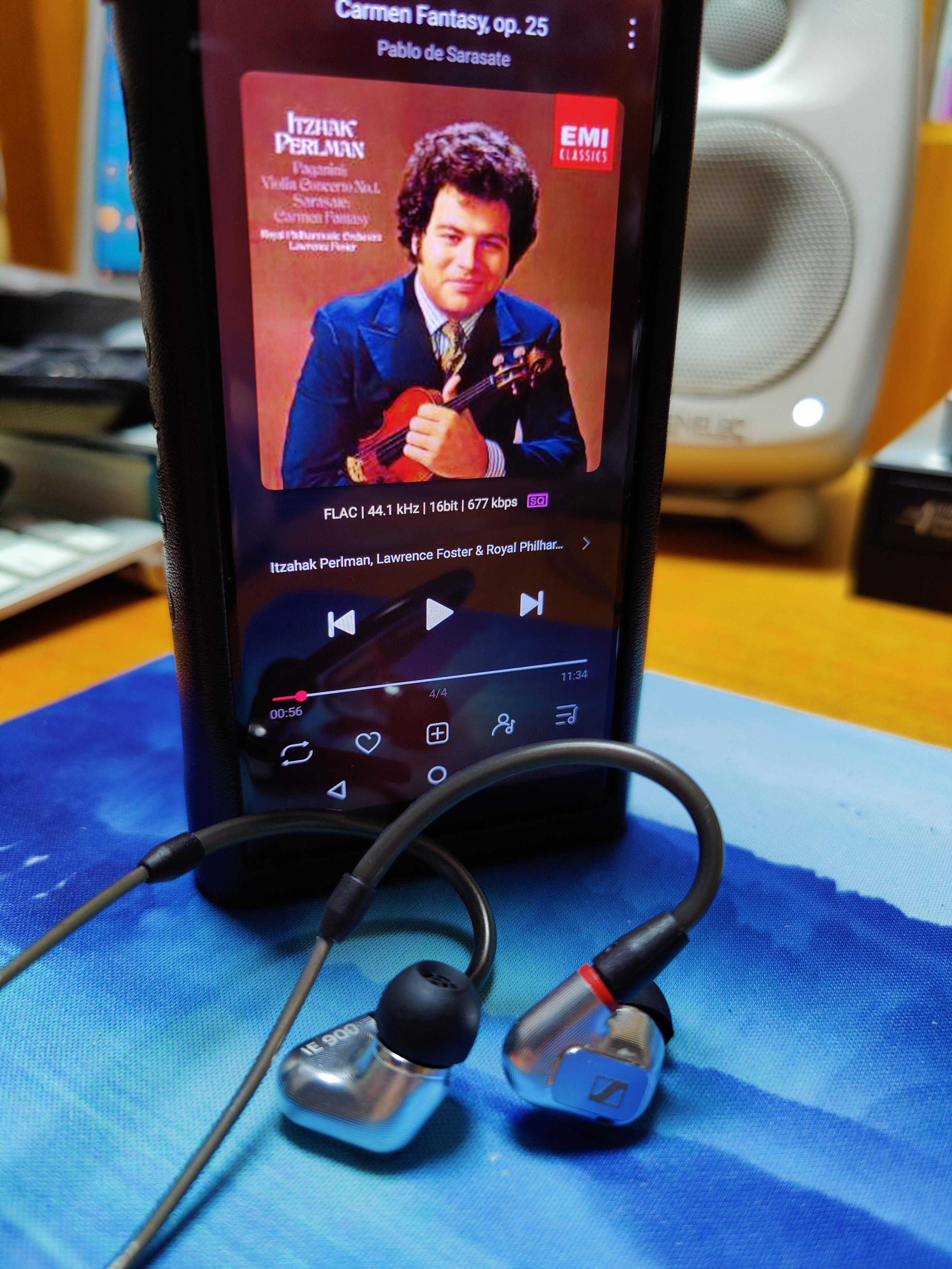 3.选听《宫本笑里-birth》DSF母带音源格式的小提琴钢琴古典小编制发烧专辑中的第4首,飞傲M15音量60左右,通过对比:还是五个字:绝对有差别!具体而言,最显著的差别之一是声场,这张古典专辑的配乐编曲非常纯粹,小提琴和钢琴作为主声旋律,弦乐队的配乐作为辅音和气氛烘托,因此听者很容易能够辨别出小提琴那非常富有质感和空气感的拉弦松香味,在这方面,IE900明显占据优势,因为众所周知IE900就是主打古典神器的塞子,这可不是随便瞎吹和玄学得。不瞒您说,我在聆听评测这首曲子的同时,也在边听边给我79岁老爸过生日特地整理他从年轻时到现在近耄耋之年的珍贵照片,IE900在诠释这首多愁善感的曲目时让我不禁眼眶湿润,可见IE900在情感渲染方面的渗透力和感染力有多大了吧!其它我也就不去展开了,IE600真心不是用来听古典的,当然如果你不去跟IE900对比的话,也算得上中端利器了!