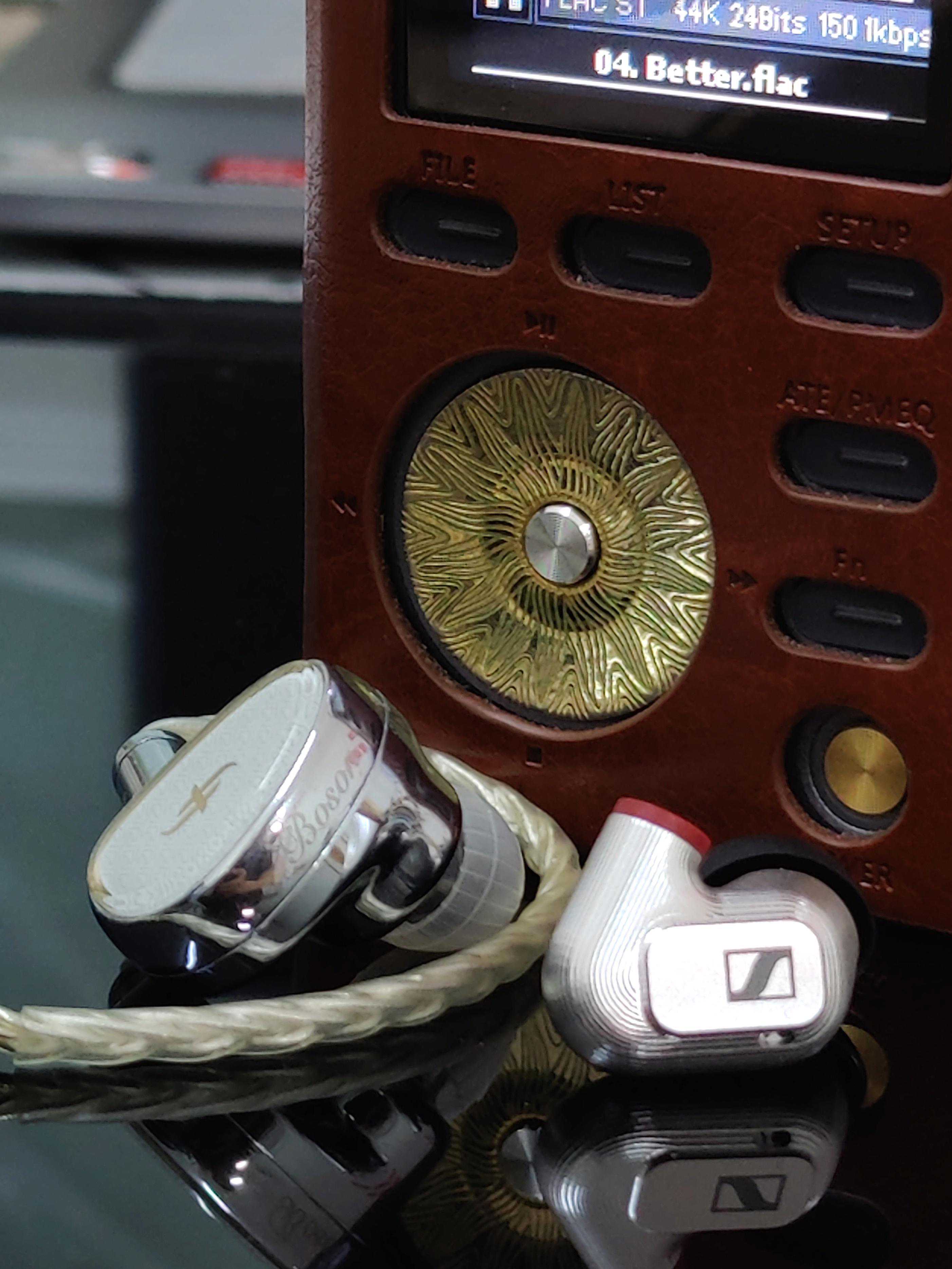 4.作为单端王者的乐图金菊花,我肯定要拿来当作音源来考验下IE900和IE600的搭配能力和两者异同!选听《郁可唯-DearLife》flac无损格式的国语流行女声专辑,两款耳塞都换用官配的3.5单端森海线材,通过对比:金菊花音量46左右,最明显的差别在于人声的位置IE900会更加贴靠,很多细小声音在听者正前方跳跃而出,位置会落在音场上较为中央的地方,更像一幅3D立体影像一般更具空间立体感。除此之外,IE900声音温润度更好,主唱具有丰厚的特质,器乐形体的诠释方式更具能量感,扩散范围更宽,形体周边更为清晰,因此不会让听着有压迫的感觉,某些金属类别的声音走得是爽脆细微但不锐利的路线,丰富而包裹性强的音场使人足够爽度却不产生听压,这种直感爽舒的听感是大厂旗舰该有的优秀素质体现!
