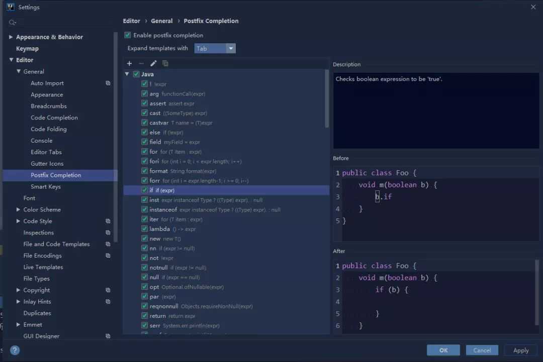 Editor–General–PostfixCompletion查看已经存在的模板(不可修改)