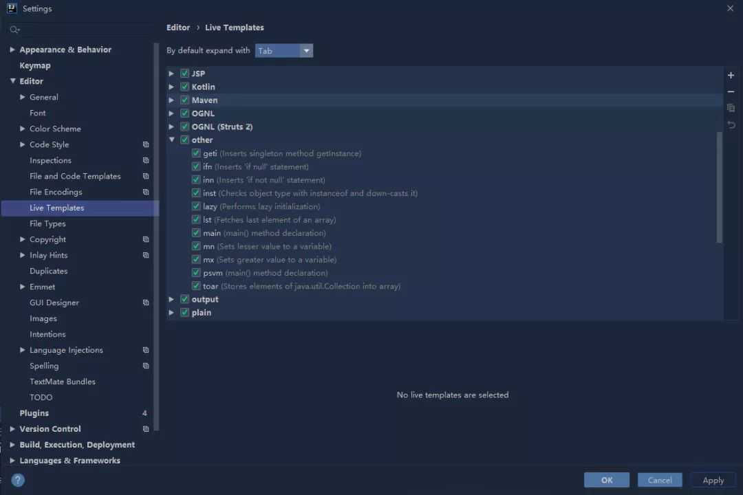 Editor—LiveTemplates查看或自定义模板(可以添加方式注释、类注释)