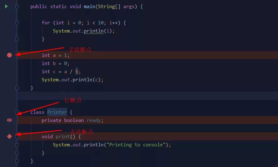 行断点(LineBreakpoints):最经常用的方式,可以设置在任何可执行的代码行上
