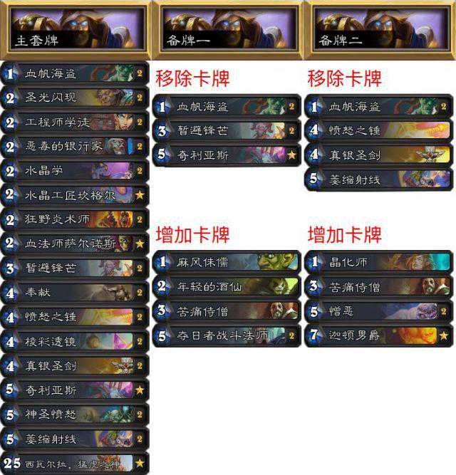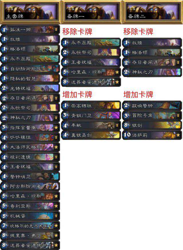 第二套卡是打超生德和盗贼的,加入奉献和大宝剑,去掉了送葬者这样的后期卡。