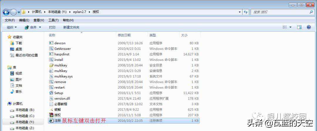 15.再次打开“\授权”文件夹,鼠标左键双击“注册”