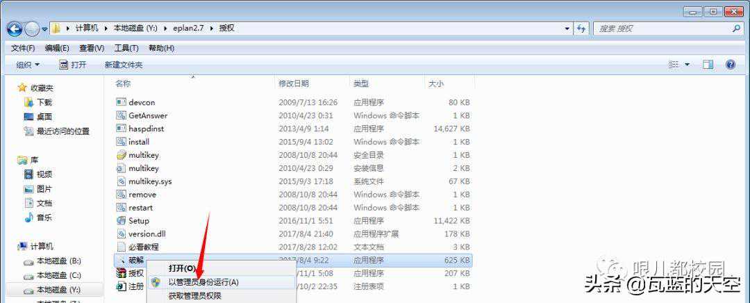 18.再再次打开“\授权”文件夹,鼠标右击“破解”,选择“以管理员身份运行”