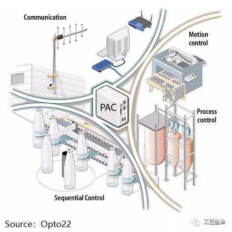 2001年ARC咨询公司的CraigResnick提出了PAC(ProgrammableAutomationControllers,可编程自动化控制器)的概念,标志着工业控制器的发展进入了一个新时代:由最初的功能单一的Logic控制器进化到了满足自动化多种应用的Automation控制器(这个变化不是一夜之间发生的,是一个渐进的过程,PAC称呼的出现只是给这类控制器赋予了一个更确切的名称)。PAC的核心无疑是PLC功能,除此之外,PAC还可能有visualization(可视化人机界面)、motioncontrol(运动控制)、CNC(数控)、robotics(机器人)、visonsystem(机器视觉)、filemanagement(文件管理)、Database(数据库)、gateway(网关)、Edge(边缘计算)等功能。
