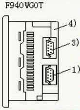 1.连接PLC端口(RS422)9针D-sub,阴型。可以通过RS422连接PLC,也可通过这个端口连接两个或多个GOT模块(F920GOT-K除外)