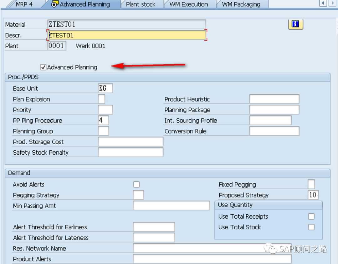 注:1.MRP3视图的需求策略设置25,2.工作计划视图选择:批次管理,3.高级计划打勾