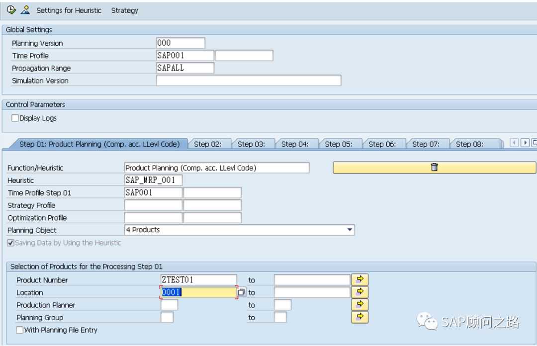 3.流程启发式SAP_MRP_002不在启发式中,立即计划组件。