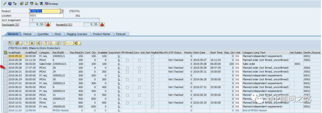 T-CODE:/SAPAPO/RRP3产品视图中查看物料5的供给和需求情况