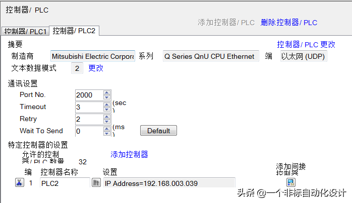 PLC2以太网UDP是对方PLC,IP地址要与对方一致