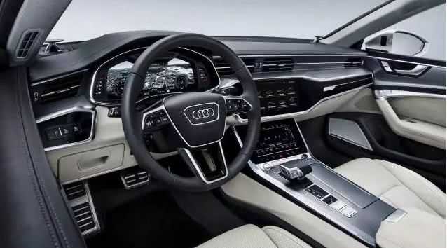 内饰方面,全新奥迪A7基本是奥迪设计语言的前沿,整体的豪华感和科技感更是达到了奥迪A8的水平。中央环抱贯穿式的中国设计,利用大量直线条来线性化整个中控台的视觉效果。而大面积的皮质包裹,加上大尺寸的钢琴烤漆饰板装饰,配合两块液晶大屏,在整体上营造非常突出的豪华感。