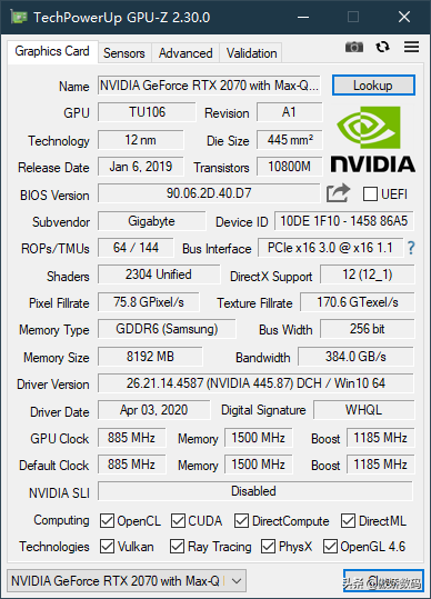 2070的maxQ版,默认的boost频率显示是1185,实际测试发现可以到1400-1500的样子