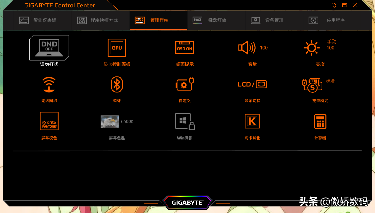 技嘉这台本本比较好的一点是没有预装什么乱七八糟的软件,比较主要的也就一个控制中心软件了