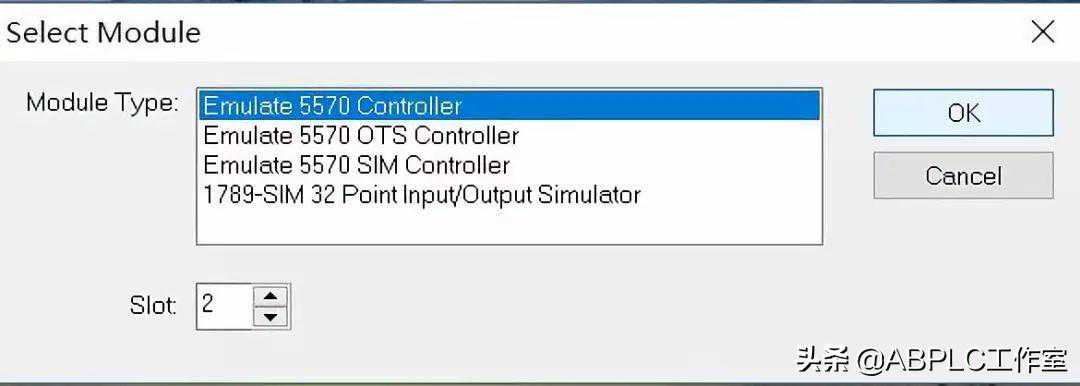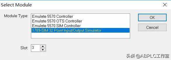8.选择1789-SIM32PointIO模块仿真器,Slot选择3,点OK.