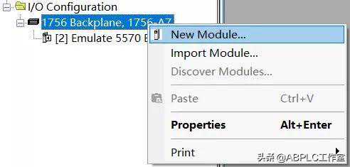 3.在IO配置,在机架上右键,选择新建模块.