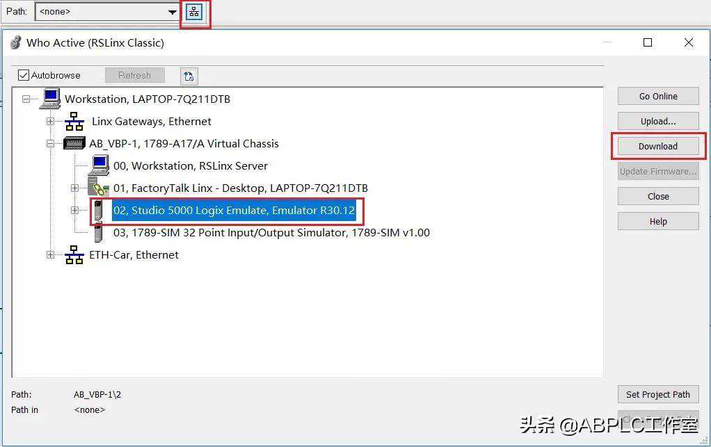 前言:在学习PLC编程或程序开发过程中,如果身边没有实体PLC,又想验证程序逻辑,这时,仿真软件是不错的选择。针对ABPLC的仿真软件Studio5000LogixEmulate,有的同学说:不好用,功能简单,不如什么某某家仿真软件。【ABPLC工作室】在这里要说,其实它很强大,界面看似简单,但隐含的功能却不少。今天,本文先分享如何使用其仿真程序,在后面的,将分享更强大功能的应用。