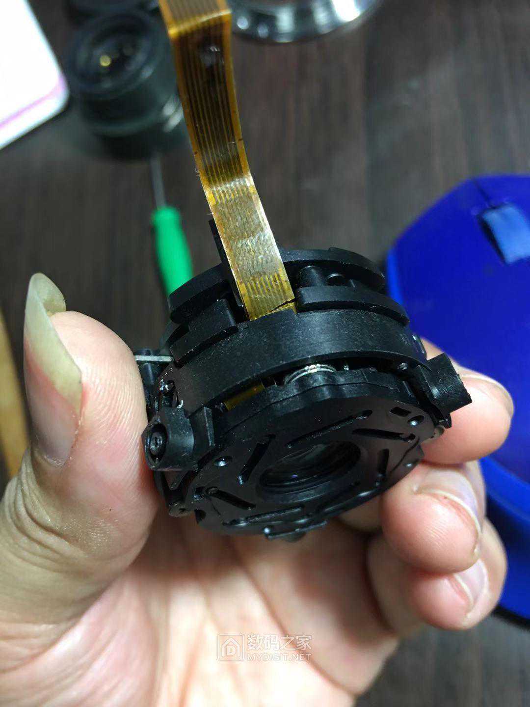 9组螺丝拆完就可以分离,IS和光圈组件,这个就是断掉的光圈线(这个应该是设计问题还是厂家有意为之)。小圆点是驱动电机4个接线柱只用了3个,旁边4点数据采集