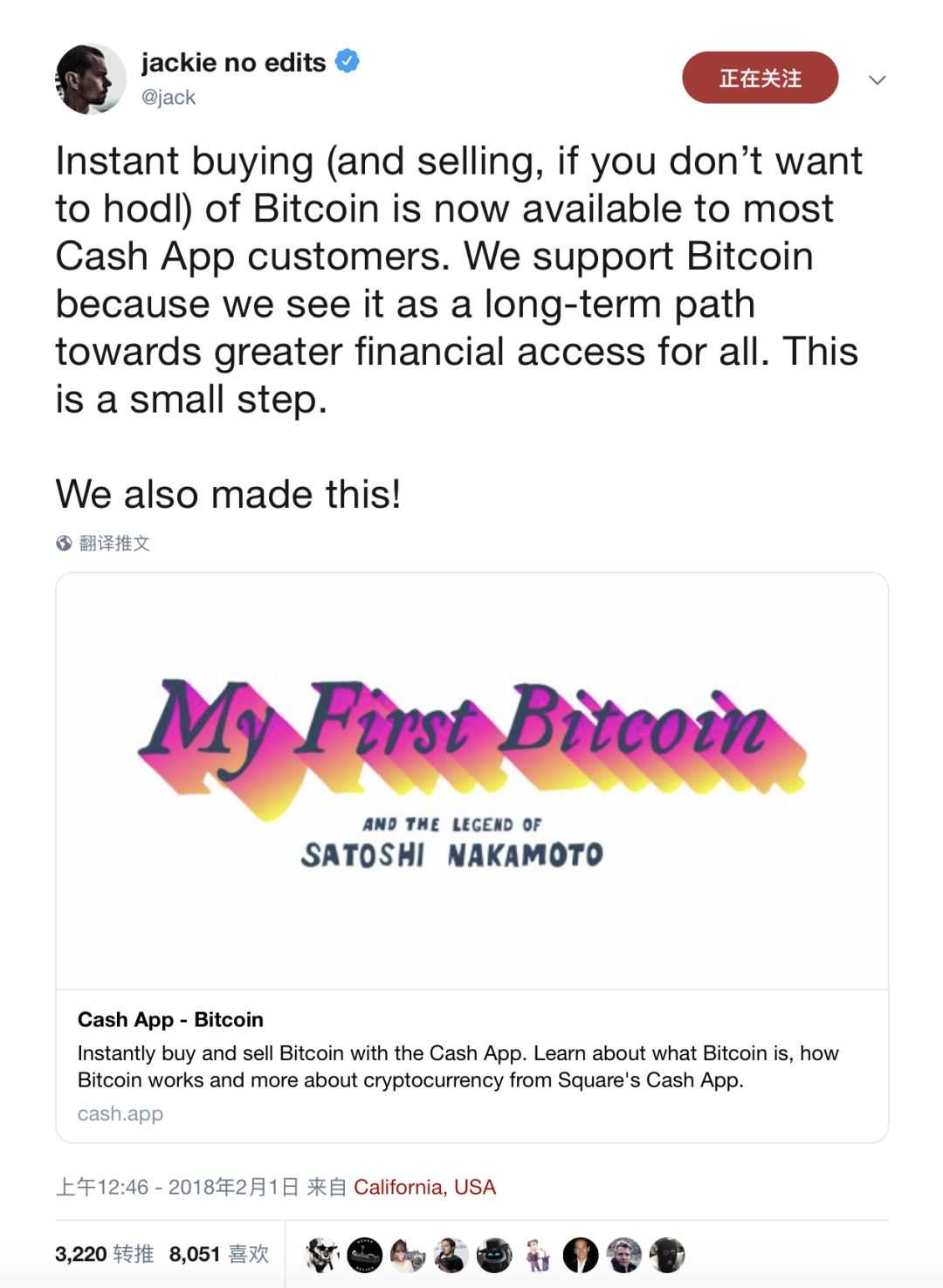 我尤为期待CashAPP接下来的发展潜力,原因有三:①他们真正理解比特币;②JackDorsey能看到比特币的普惠金融潜力;③JackDorsey本人投资了LightningLab2018年的种子轮。