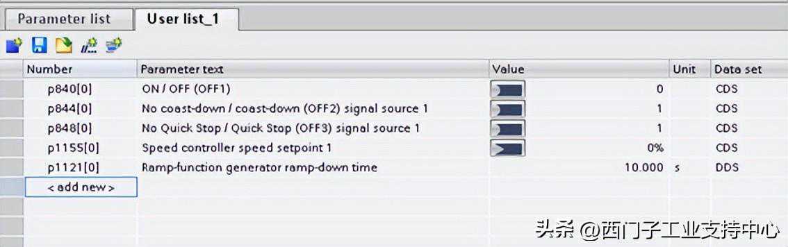 现在也可以为S120设备创建用户定义的参数列表,仅在不包含参数值的情况下,才可以保存参数列表。
