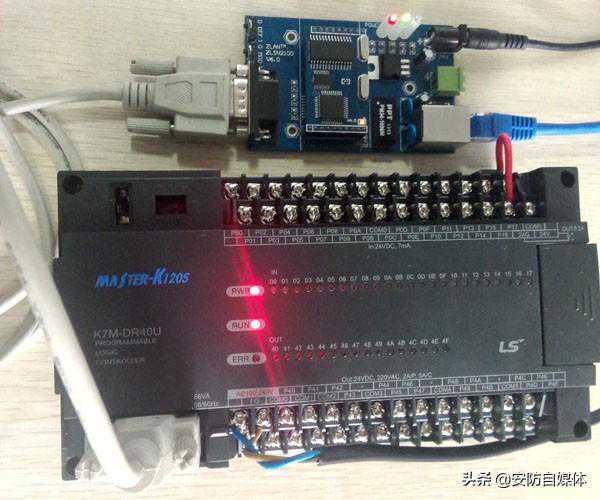 以下是卓岚ZLSN2100和LG的Master-K120S型号PLC连接和进行远程控制的实际连接图