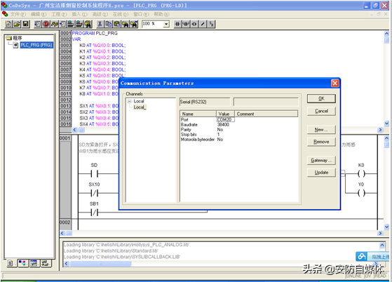 此处基于和利时LM3108,将卓岚串口服务器和LM3108进行硬件上的连接,通过在远端服务器上虚拟串口,然后通过PowerPro和虚拟出来的COM20进行通讯,实现PLC的远程下载和控制,软件界面如图所示。