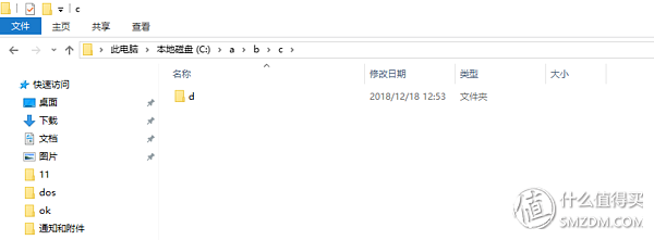 ▼输入命令:mkdirc:斜杠a斜杠b斜杠c斜杠d,直接生成了4层文件夹(斜杠不能输入,这里的斜杆就是右斜杠)。