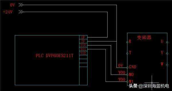三菱plc(mr型或mt型)的输出点、com点直接与变频器的stf(正转启动)、rh(高速)、rm(中速)、rl(低速)、输入端sg等端口分别相连。三菱plc可以通过程序控制变频器的启动、停止、复位;也可以控制变频器高速、中速、低速端子的不同组合实现多段速度运行。