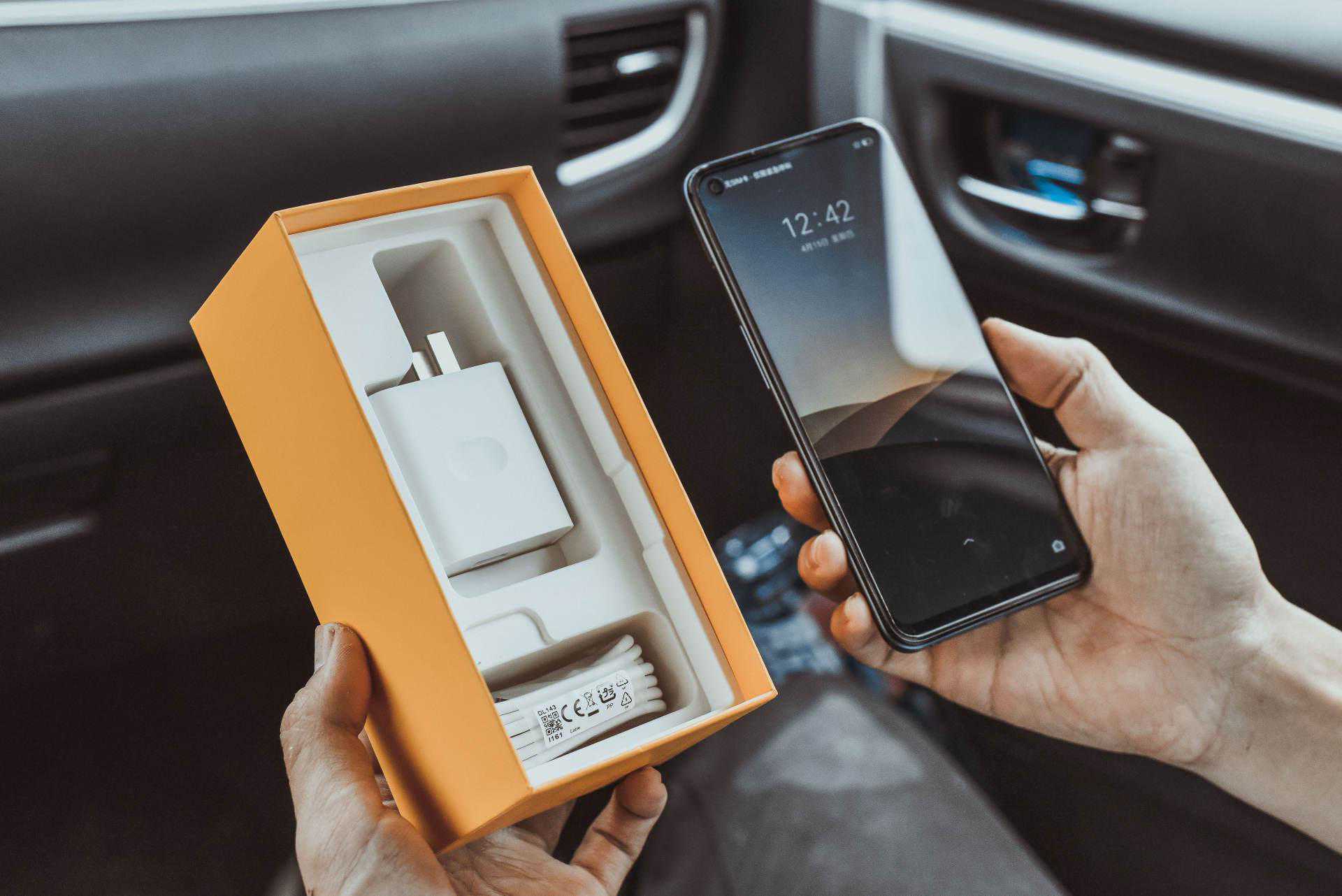 包装中配件包含一台realme真我V13、一个软胶清水套、入门指南、18W的充电器、2A的数据线以及一个卡针,并没有3.5mm耳机转换线,毕竟这realme真我V13配备了3.5mm耳机孔。