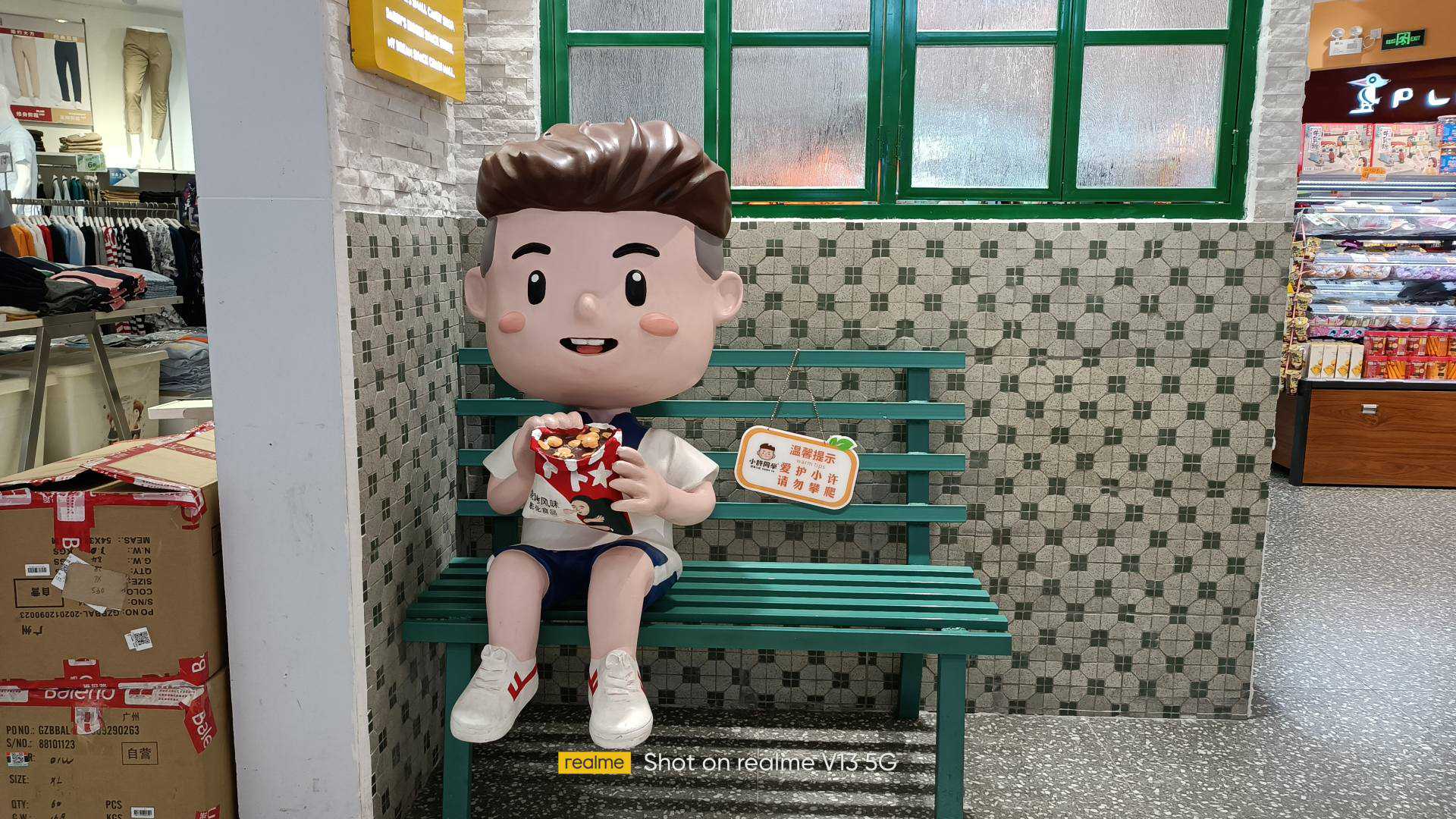 这种图片中玩偶表面的材质细节还能较为清楚地辨别,没有出现一涂到底的情况,其中最能表现这一说法的肯定是右下角凉席枕头的纹理,放大后还能较为清晰地看见交错的编织纹路。总的来说,本次realme真我V13的拍摄效果还说过得去,说不上很强,但绝对是这个价位中名列前茅的存在。