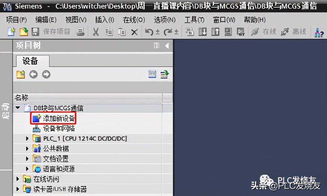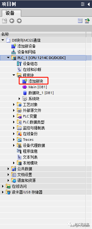 第一步:(创建一个博途新项目,命名:DB块与MCGS通信)