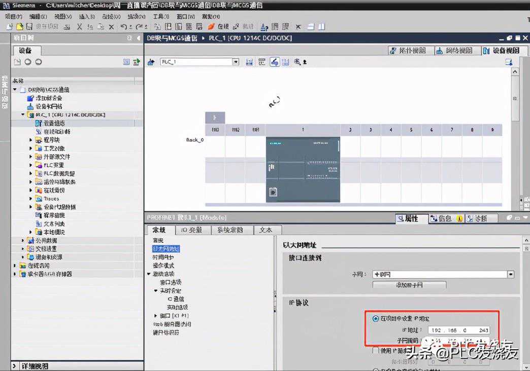 第六步:(双击CPU网口—以太网地址—IP协议—设置PLCIP地址)